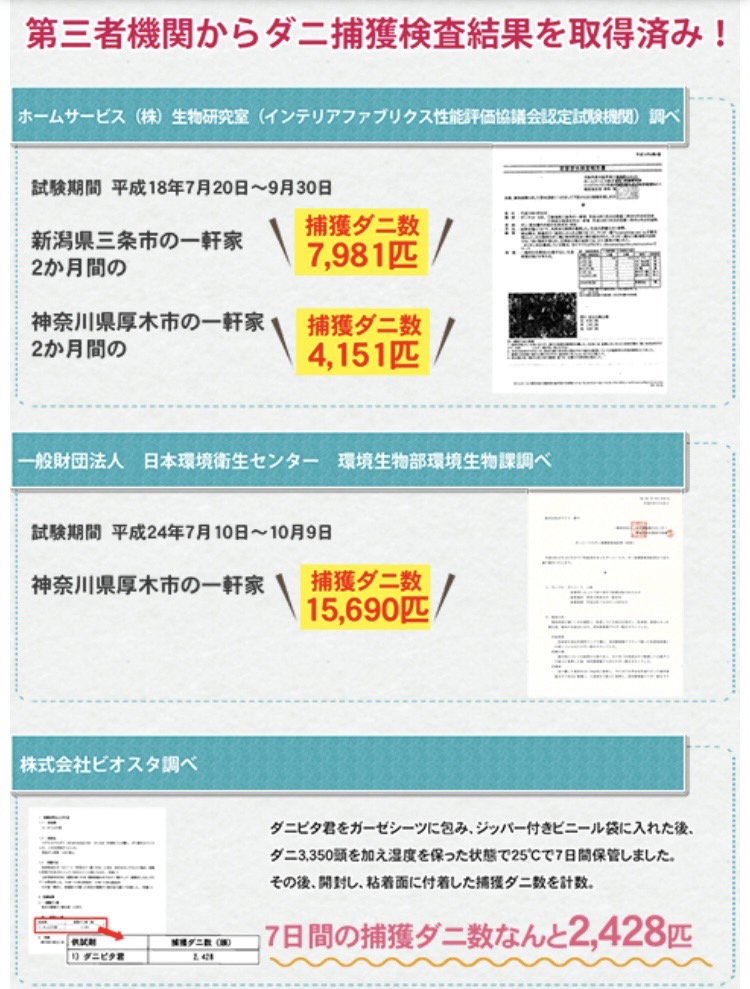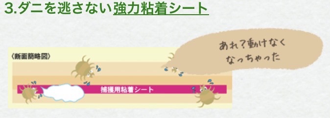 ダニ捕りシートは、何といってもダニを逃がさない捕獲力が重要です。